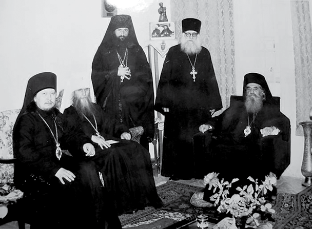 Брендону Грову. Александровское подворье в Иерусалиме, 9 февраля 1982 г. Знаки за покровительство Святой Земле вручает начальник РДМ (РПЦЗ) архимандрит Антоний (Граббе)