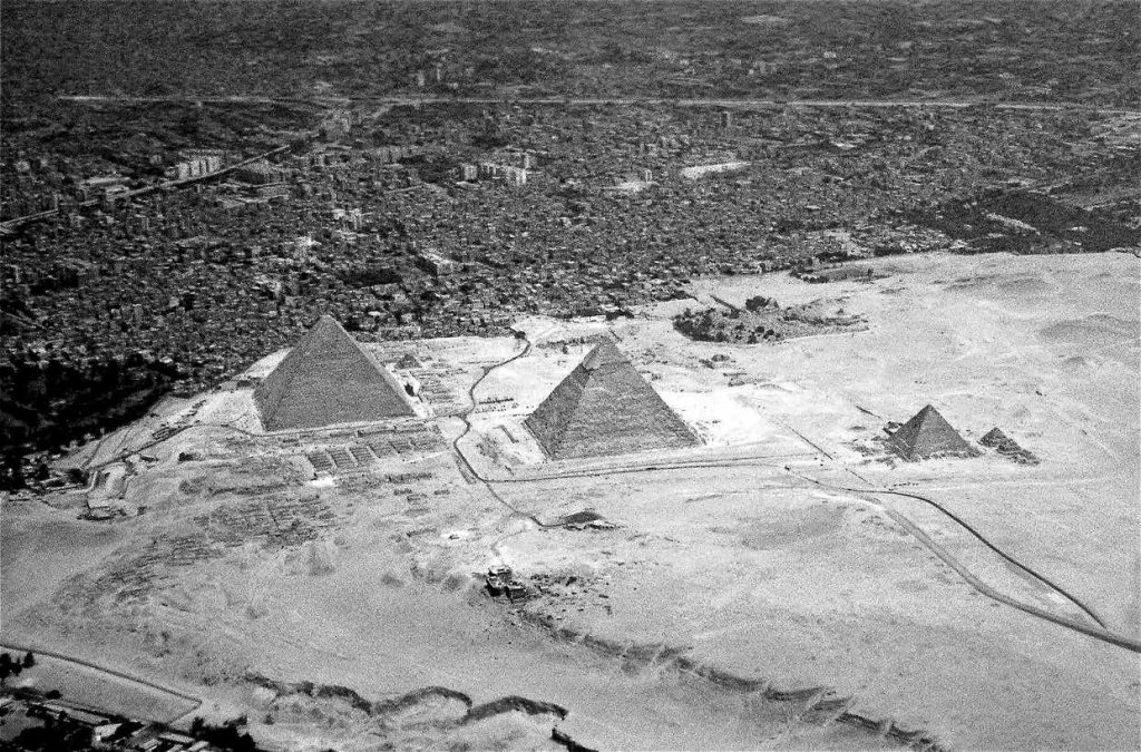 Верхний отполированный слой давно исчез, его растаскали на свои нужды. Осталось только немного на самой вершине пирамиды Хефрена, второй по величине. Самая большая и первая из триады, пирамида Хеопса высилась на 146 метров, осталось только 137. Ее строили 20 лет, когда-то около 2600 г. до Р.Х.