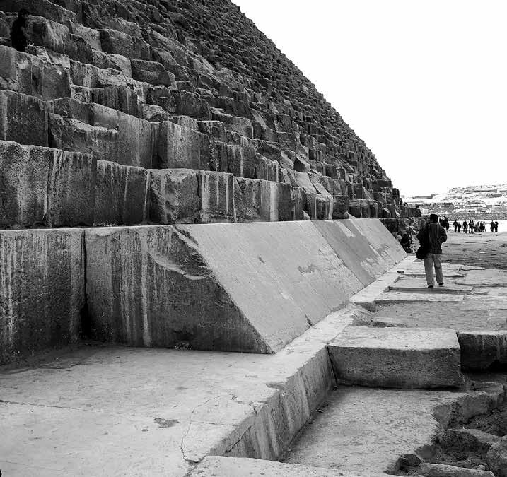 Большинство камней – (а на пирамиду Хеопса пошло больше двух миллионов) весом около двух с половиной тонн изъяты из известняковых карьеров. На облицовку брали гранит. Медные инструменты легко ломались о твердую горную породу, поэтом у обрабатыва ли его специальными молотами из доломита. Такими молотами делали выбоины, затем в них забивали деревянные клинья, заливали водой, клинья набухали, и гранит трескался. Выломанный камень обрабатывали, полировали так, что он легко скользил. Его спускали к пришвартованным ладьям и отправляли вниз по течению на место стройки.