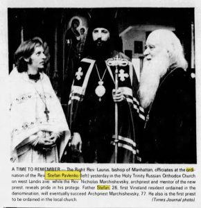 Почти сразу владыка Антоний (Медведев) решил рукоположить меня в диаконы. Я сказал ему, что обещал нашему батюшке в Вайнлэнде, отцу Николаю Марцышевскому, вернуться после учебы в семинарии и помогать. Тогда владыка Антоний, владыка Никон и отец Николай договорились, что меня рукоположат в Сан-Франциско, но определят в Свято-Троицкую церковь в Вайнлэнде. Там я и начал служить, а потом владыка Никон собирался рукоположить меня в священники, но заболел и попросил сделать это владыку Лавра, который тогда был епископом Манхэттенским.