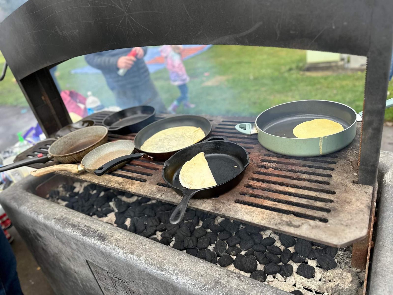 Масленица не подвела, непогода тоже сделала перерыв в своем важном деле орошения округа Сакраменто. Собралась компания постоянных друзей «Славицы» и новых ценителей традиционной культуры. Пришли не с пустыми руками. У каждого были сковородки и блинное тесто. Настало время кулинарного поединка хозяек. Пока поспевали блинчики, люди активно общались. Мегги рассказала, что у нее нет славянских корней, но побывав в Молдавии с корпусом Мира, она влюбилась в нашу культуру и теперь изучает Славянский фольклор. Валери — прошла пару уровней онлайн-курсов по русскому языку и хочет узнать больше. Сегодня она испекла свой первый русский блинчик. Соседки с удовольствием делились тонкостями рецептуры.