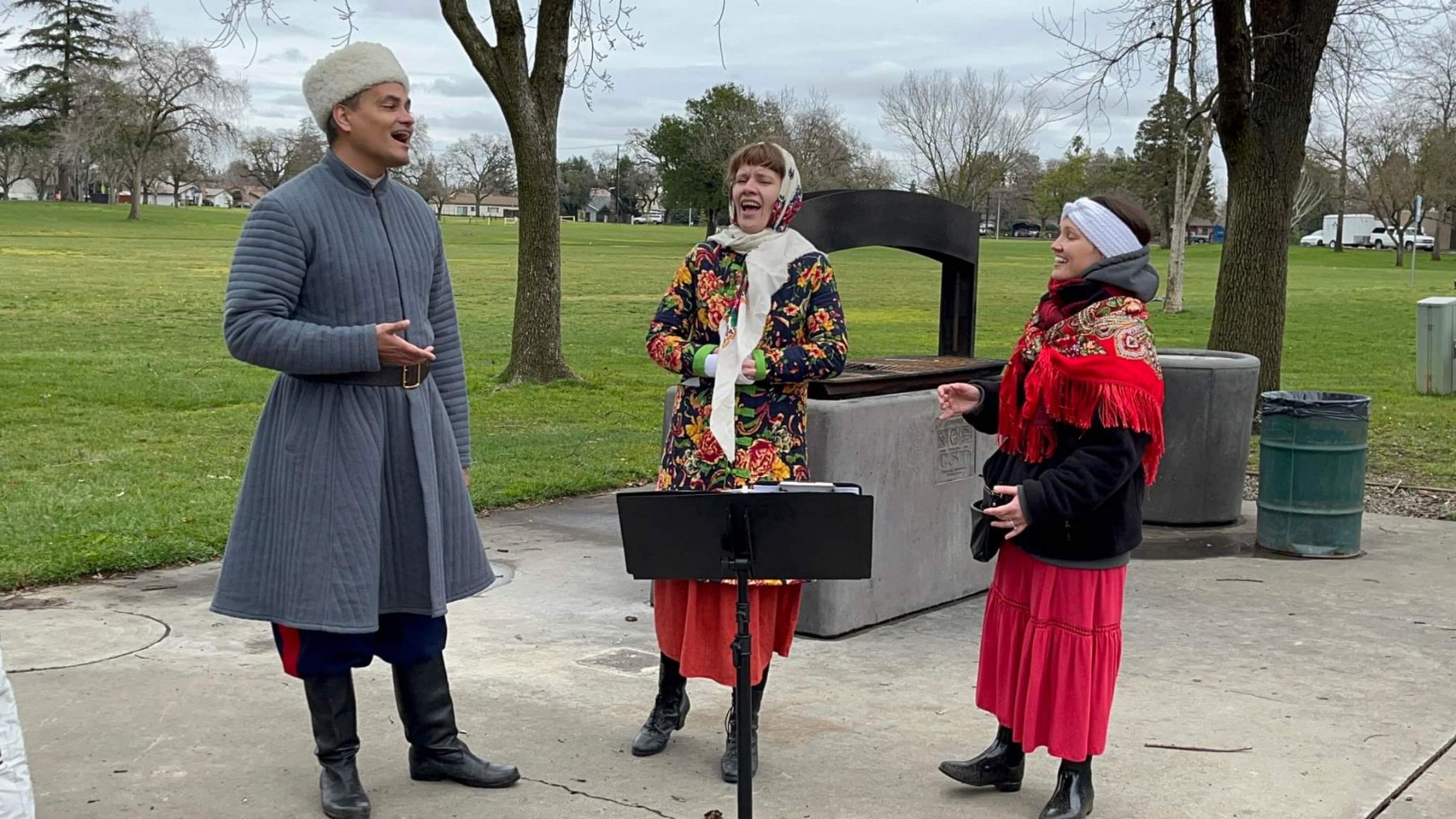 Все было против Масленичных гуляний. Накануне небеса будто вспомнили, что не додали влаги на сухую калифорнийскую почву. Однако участники народного ансамбля «Славица Фолк» (Slavitza Folk) планы не поменяли. Редкие гуляющие и работники регионального парка Элк Гров замирали при виде веселой компании возле «грильниц». Из динамиков доносилось: «Маслена! Маслена! Приходи скорей!».