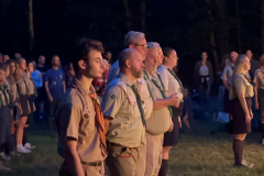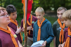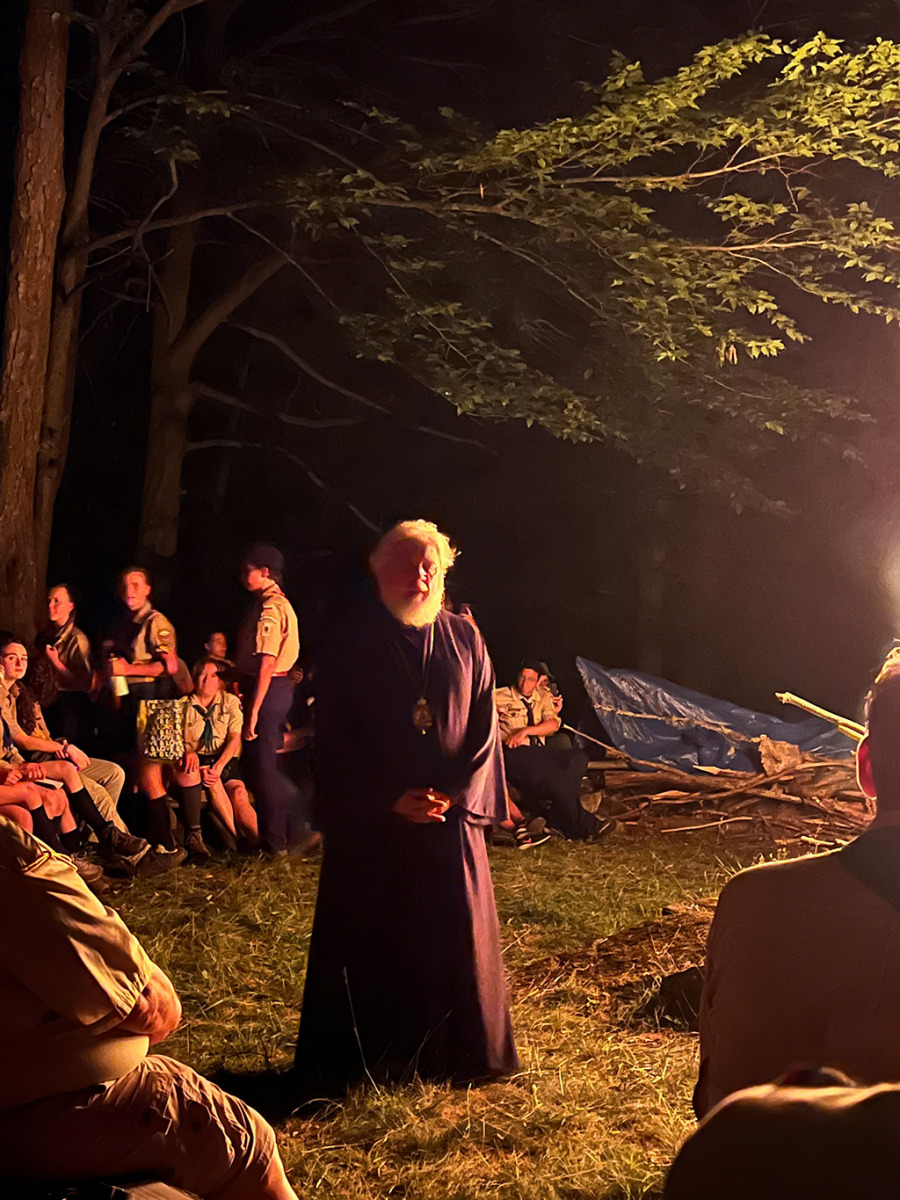 В воскресенье утром божественную литургию служил архиепископ Гавриил с иереем Андреем Подымовым и дьяконом Андреем Псарёвым. Во время утреннего построения и подъёма флага было зачитано приветствие от старшего скаутмастера российского ОРЮР Алексея Беспалова: «Дорогие наши Братья и Сестры из Дружины «Царское село»! Волчата и белочки, разведчики и разведчицы, витязи и дружинницы, руководители и друзья Организации! От имени всей российской части ОРЮР поздравляю вас со знаменательной датой, с 75-летием вашей славной Дружины! Это удивительно долгий и уникальный путь! Как в семье – приходили и вырастали новые поколения юных разведчиков, вслед за которыми сейчас стоят в строю уже новые ребята. А те, кто когда-то был волчатами, уже сейчас носят зеленые галстуки. Это ли не лучший пример той работы, которая десятилетиями ведется здесь, вдали от России?