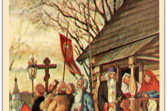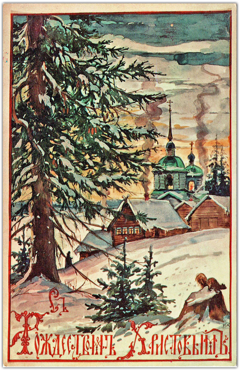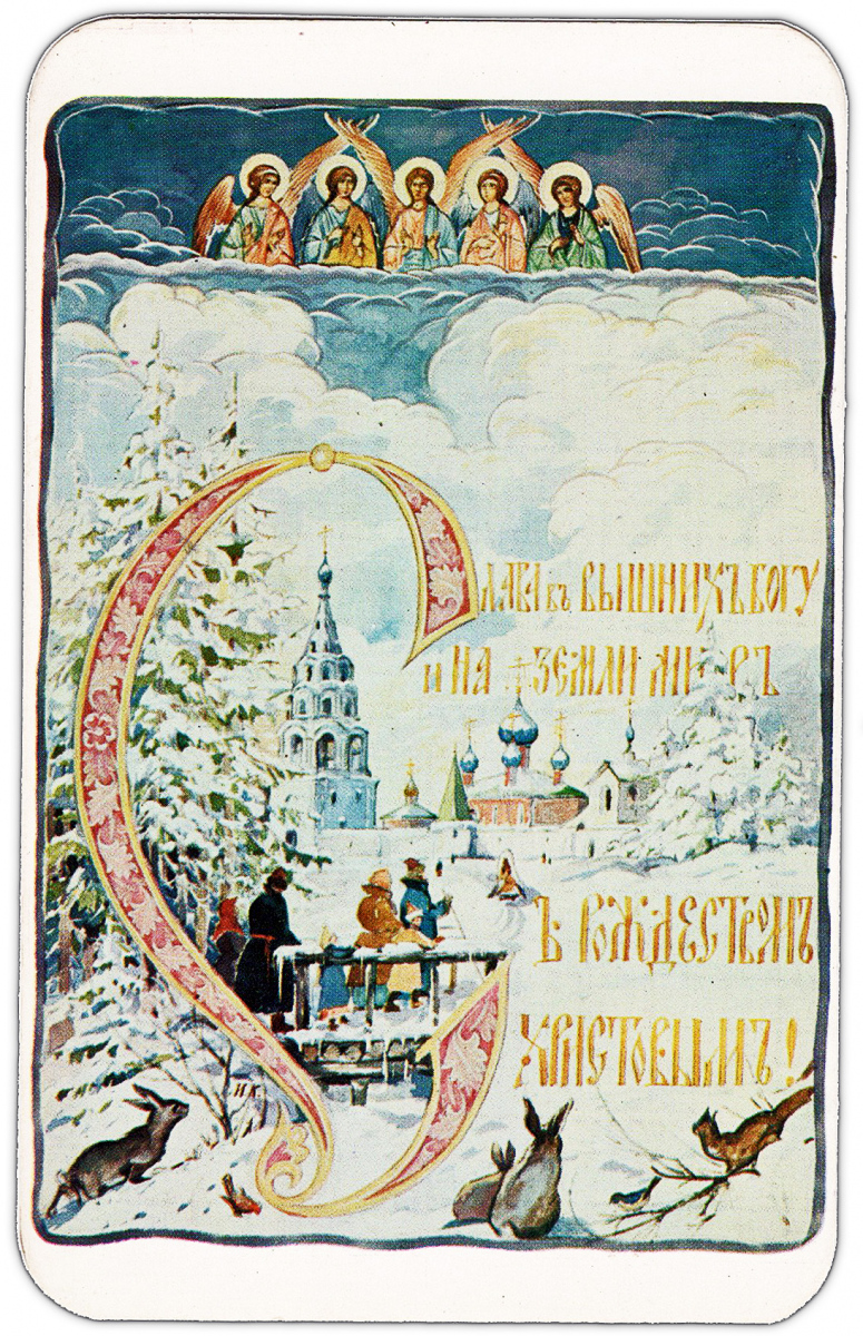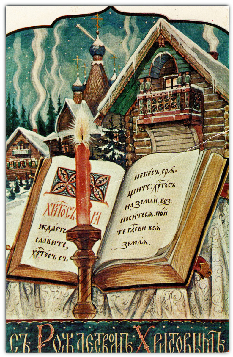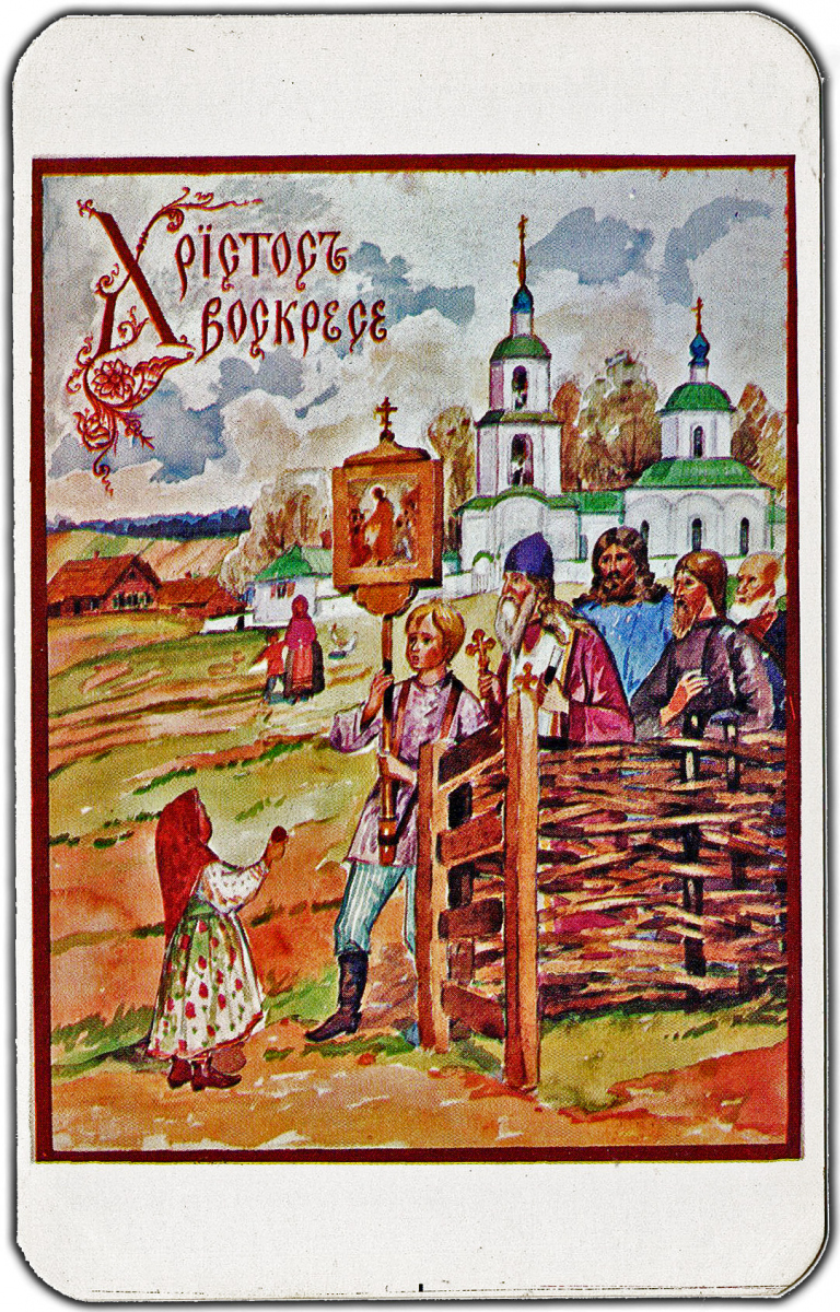 Судя по обратной стороне всех этих открыток, совершенно очевидно, что они предназначались для посылки по почте в виде открытых писем. Однако мало кто пользовался этой возможностью. Люди обычно писали свои поздравления, пересекая вертикальную разделительную черту открытки, и даже поверх слов “Post Card” и рамки места для марки. Затем они запечатывали открытку в конверт и так посылали ее по почте. Кстати, вся братия монастыря, использовавшая эти открытки, и даже сам о. Киприан, делали то же самое. У меня есть две открытки, посланные о. Киприаном моему дедушке Николаю Дмитриевичу, написанные его быстрым, размашистым почерком поверх напечатанных почтовых надписей. И тем не менее, именно в виде почтовых открыток эти поздравления печатались почти тридцать лет, прежде чем монастырь решил наконец перейти на издание складных карточек для пересылки в конвертах. Отметим, что и все остальные издатели – Мартьянов, Яременко, Луч, Подушкин и другие – поступали точно так же, невзирая на явное предпочтение клиентов, включая самих себя. Вот что значит привычка!