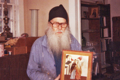 Глядя на быстрый, размашистый почерк о. Киприана, сразу вспоминаю его самого. Ведь большую часть времени, когда издавались эти открытки, наша семья жила в городе Сиракьюс, неподалеку от Свято-Троицкого монастыря, поэтому мы довольно часто ездили туда и были знакомы с его братией. Отец Киприан был невысокого роста, пропорционального телосложения и, как помнится, с очень впечатляющей бородой. Он всегда спешил куда-то, двигался быстро, улыбался мало. Отец Киприан на самом деле был очень занят, много времени занимала иконопись: он вместе с учениками расписал 14 православных храмов. Его иконописная мастерская была постоянно занята выполнением частных заказов на домашние иконы, так что иногда приходилось ждать больше года, прежде чем заказчик получал желаемый образ. Помимо этого, отец Киприан был воспитателем семинаристов при Свято-Троицком монастыре, духовником многих русских эмигрантов, а также монашествующих и даже архиереев. Иногда ему приходилось ездить в близлежащие приходы, чтобы совершать там службы, когда местный священник был болен или находился в отъезде. Вполне возможно, что внешняя суровость служила для него своеобразной защитой от восторженного почитания, которого он вполне заслуживал, но всеми силами избегал как неподобающего поведения для человека, посвятившего себя монашеской жизни.