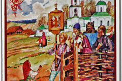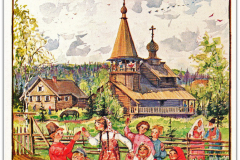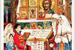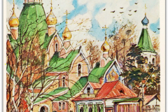 Если считать три переизданные открытки с повторным рисунком, но разными номерами на обратной стороне, число выпущенных Свято-Троицким монастырем в Джорданвилле поздравительных открыток стандартного формата (3,5 х 5,5 дюймов) достигает сотни. Все они, за исключением лишь одной, воспроизводят рисунки архимандрита Киприана (Пыжова). Та, что является исключением, была нарисована о. Алипием (Гаманович) – талантливым иконописцем, учеником о. Киприана. Глядя на нее, можно лишь пожалеть, что это единственная его работа, запечатленная на открытках монастыря.