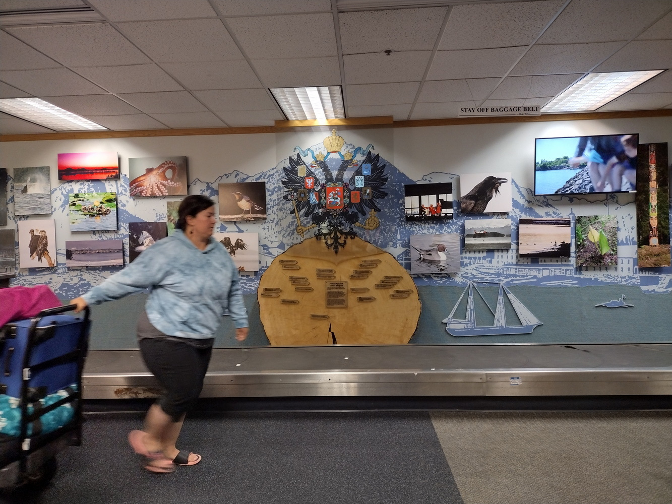 Мы прилетели специально, чтобы прикоснуться к истории, увидеть невероятную природу Аляски, а также понять, остался ли Русский дух в этих местах. С первых же минут стало понятно: еще как остался! В зале прилета аэропорта нас встретил огромный герб Российской империи. Аляскинцы не стесняются Русского периода своей истории, даже наоборот – всячески его подчеркивают и умело монетизируют. Здесь вы пройдетесь по улице Шелихова, свернете на Давыдова, а на улице Баранова постоите в тени. Монастырская, Верстовая, Крузова, остров Японский (именно так – Japonski), озеро Медвежье (Medvejie Lake) – в топонимике сплошь и рядом русские названия, которые соседствуют с американскими. В центре – сувенирные лавки с матрешками и ушанками, которые вас сопроводят до главной доминанты города – православного собора Святого Михаила Архангела. Храм был построен в 1848 году, однако полностью сгорел в 1966. Подробно об этом нам рассказала пожилая американка, среагировавшая на мою кубанку в магазине.