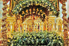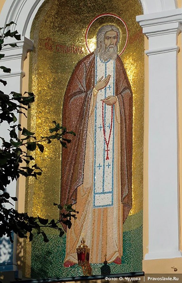 Еще нельзя не рассказать о Благовещенском соборе, который построен по завещанию батюшки Серафима у Канавки, на одной линии с Троицким. Высокий, белоснежный, под золотистым куполом… Когда попадаешь внутрь, в прямом смысле слова дух захватывает от грандиозной красоты и великолепия — весь интерьер от пола до купола, все колонны украшены мозаикой. Мозаичные иконы, позолота — чувствуется, что всё сделано искусными мастерами с молитвой и любовью.