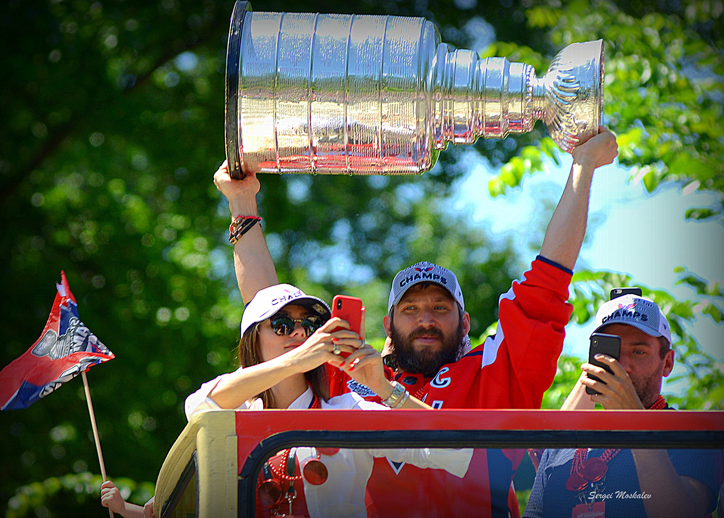 На верхнем снимке: капитан команды Washington Capitals Александр Овечкин с кубком Стэнли на параде в Вашингтоне. 2018 год.