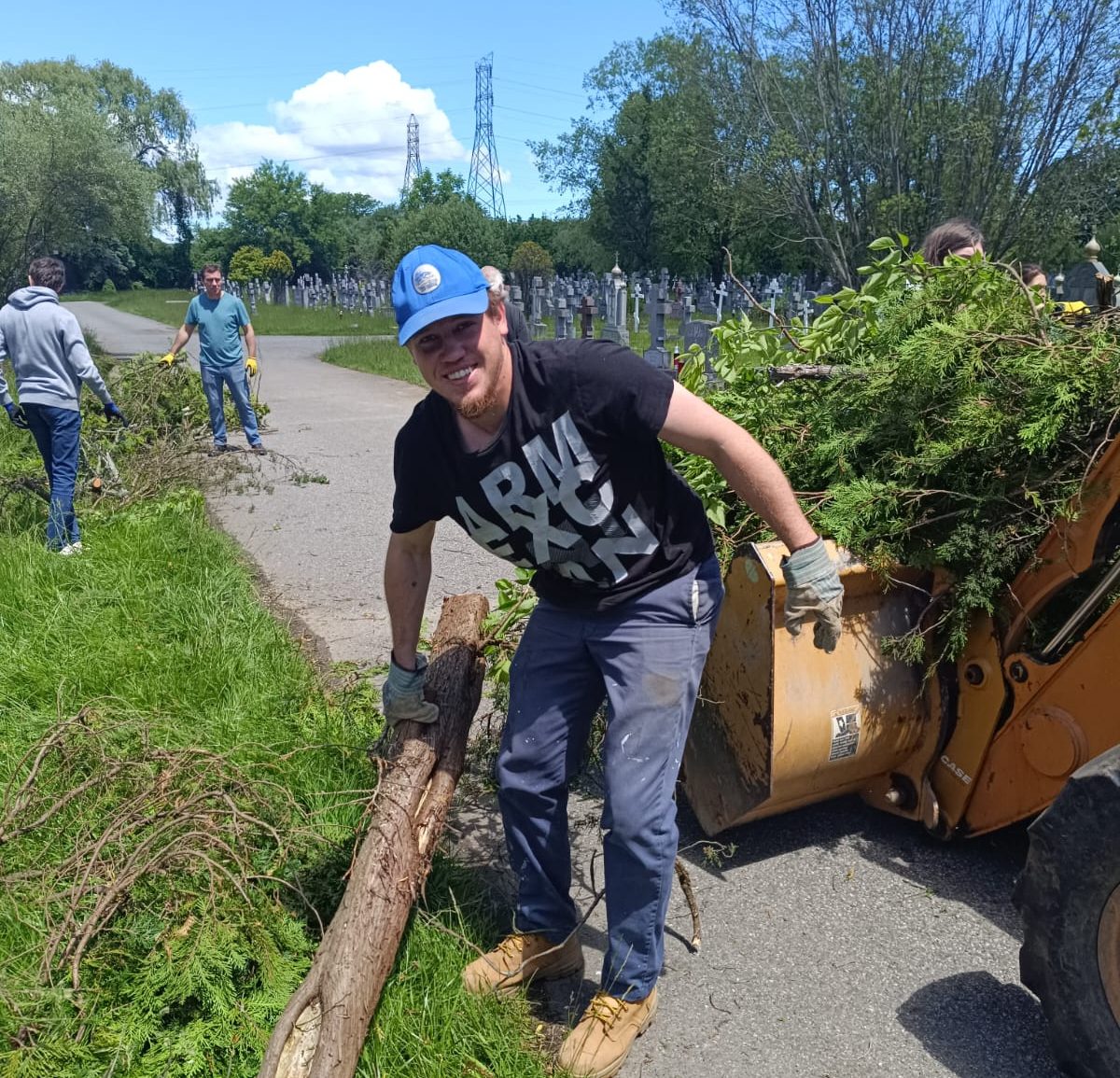 В этом году впервые с предложением помочь в таком благородном деле выступил приход храма Святого Сергия Радонежского при Синоде РПЦЗ. Службы здесь идут на английском языке. Духовно окормляет англоязычных прихожан иеромонах отец Зосима (Крампис). Большая организованная группа, в основном – молодёжь, приехала из Нью-Йорка в праздничный день, чтобы потрудиться во Славу Господа и в память о почивших христианах.