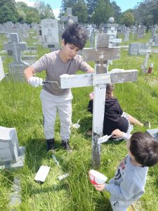 С большим увлечением в покраске крестов принимали участие дети прихожан. После затяжных дождей выдался солнечный и теплый день, что способствовало хорошему настроению и рабочему энтузиазму. Была проделана огромная работа!