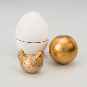 140 лет назад, в 1885 году император Александр III подарил своей жене, императрице Марии Фёдоровне, необычное пасхальное яйцо с драгоценным сюрпризом внутри – «Курочка». Корпус яйца был покрыт белой эмалью, имитирующую яичную скорлупу, а под ним находился «желток» из матового золота, внутри которого была спрятана курочка, изготовленная из золота разных оттенков. В курочке находилась крошечная императорская корона, украшенная алмазами. Завершающим сюрпризом, задуманным самим императором, стало миниатюрное подвесное яйцо из рубина. Создателем этого уникального ювелирного изделия был русский ювелир немецкого происхождения Карл Фаберже. Мария Фёдоровна высоко оценила «Курочку» и этот подарок стал началом особого сотрудничества: мастеру был присвоен титул Поставщика Высочайшего Двора, и он получил право украшать свои изделия императорским гербом.