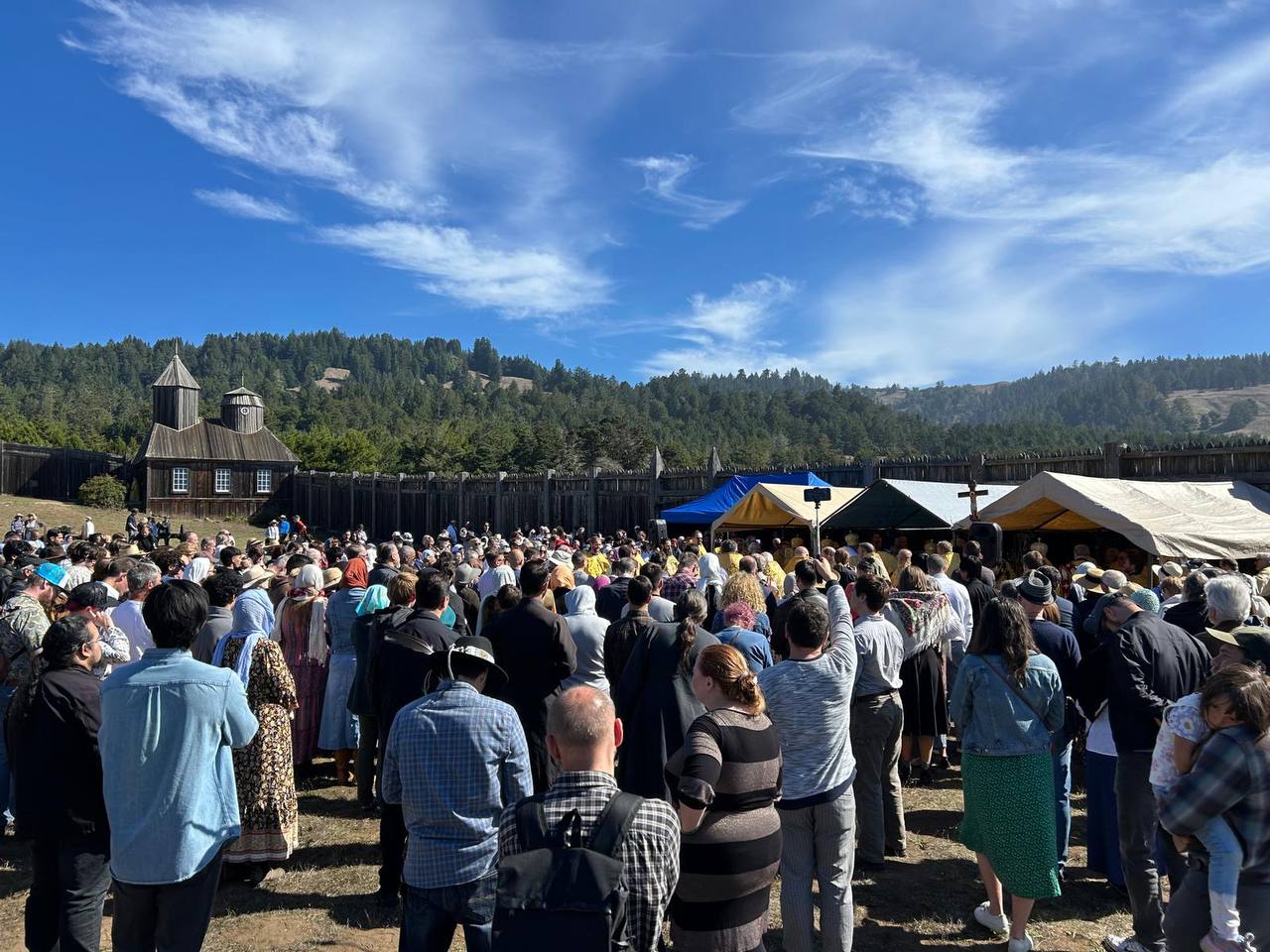 Четвертого октября 2025 года более тысячи православных паломников со всех уголков США собрались в Форте Росс (1812 -1841) на торжественную Литургию, посвященную 100-летию возобновления богослужений в первом православном приходе континентальной части Америки.
