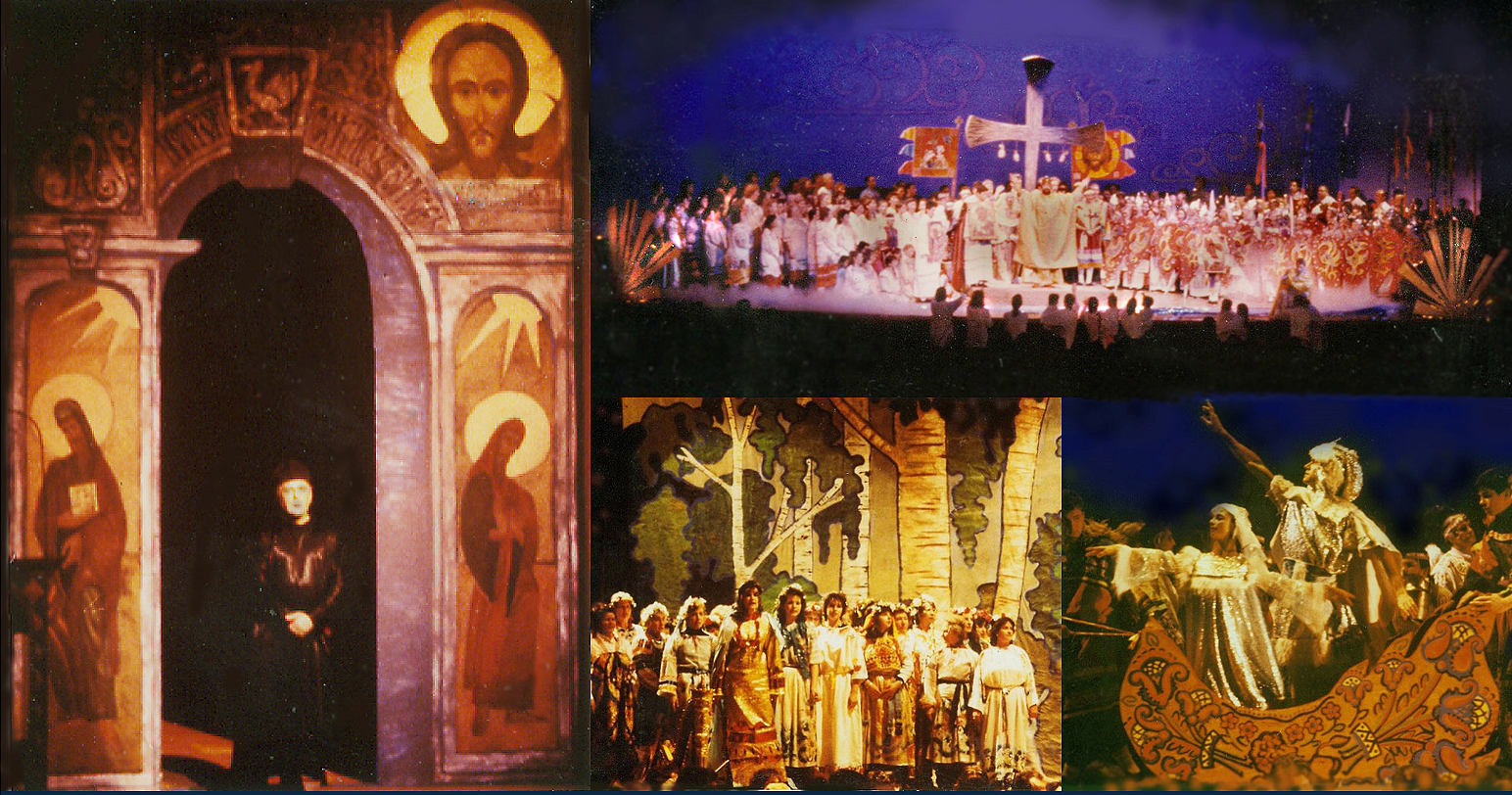 В 1988 Русское Зарубежье праздновало Тысячелетие Крещения Руси. В Нью-Йорке была устроена грандиозная постановка силами 38-ми русских зарубежных организаций с участием нескольких хоров и балетных компаний из разных штатов, симфонического оркестра, известными солистами из Европы и Австралии, с костюмами и декорациями. Я была автором сценария из русских классических произведений и художественным директором, а Димитрий Шидловский был художником и создателем декораций и реквизита, как статуя Перуна, древние гусли, щиты и мечи.