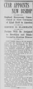 The 100th anniversary year of St. Tikhon’s began, and I started reading more about my patron saint. Books, articles, essays, and then a friend forwarded an online link to the archives of the San Francisco Call. She shared a search of articles she made of the then Bishop Tikhon. There were dozens, if not more, some with images and many with interesting insights and historical facts. I pored over these with much eagerness.